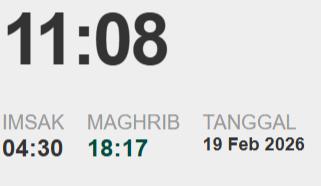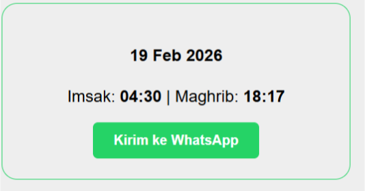 const data = [{t:"19 Feb 2026", i:"04:30", m:"18:17"}]; // Gunakan data harian