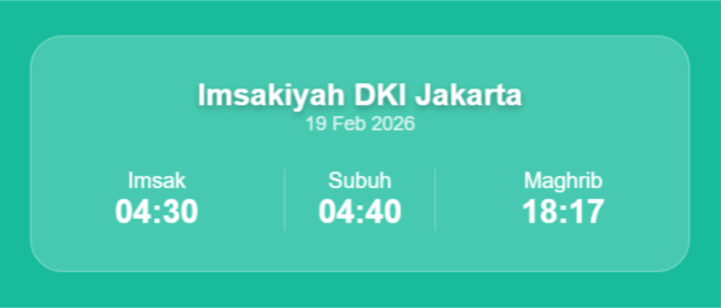 Jadwal Jakarta: Imsak 04:30 | Maghrib 18:17