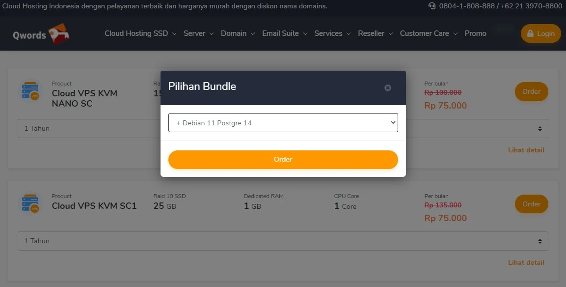 Anda tidak perlu lagi kebingungan dalam menginstall. Hanya perlu aktifkan layanan VPS dengan memilih bundling “Debian 11 Postgre 14”, maka PostgreSQL 14 akan langsung terinstal.